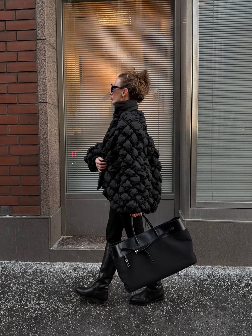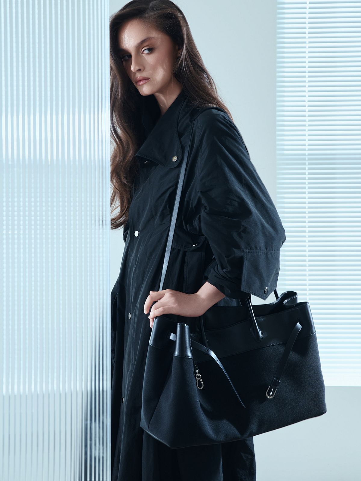 Минималистичный плащ или объёмное пальто, строгий костюм или струящееся платье. PROUN L станет опорной точкой образа: визуальный якорь и функциональный спутник.